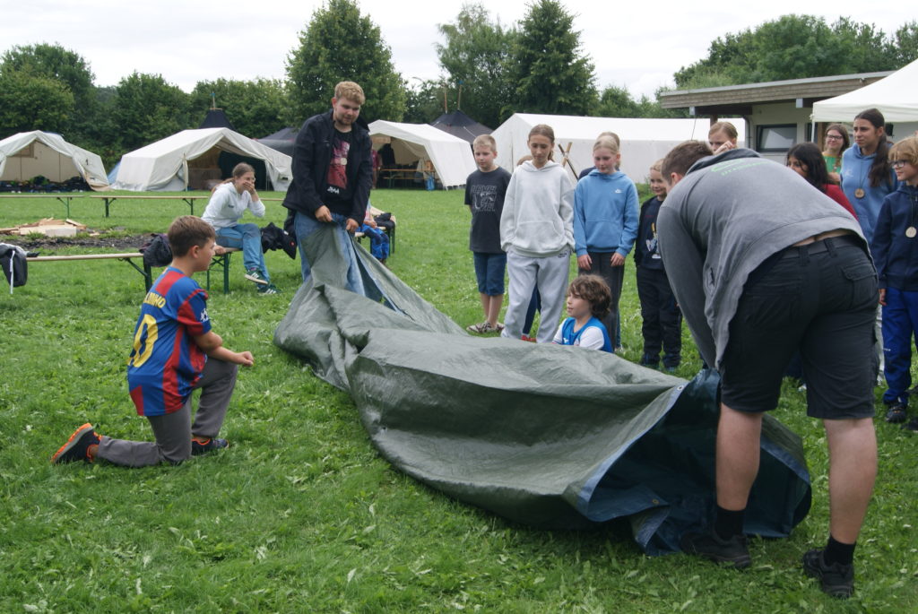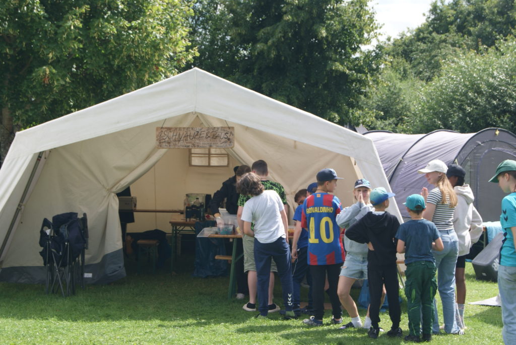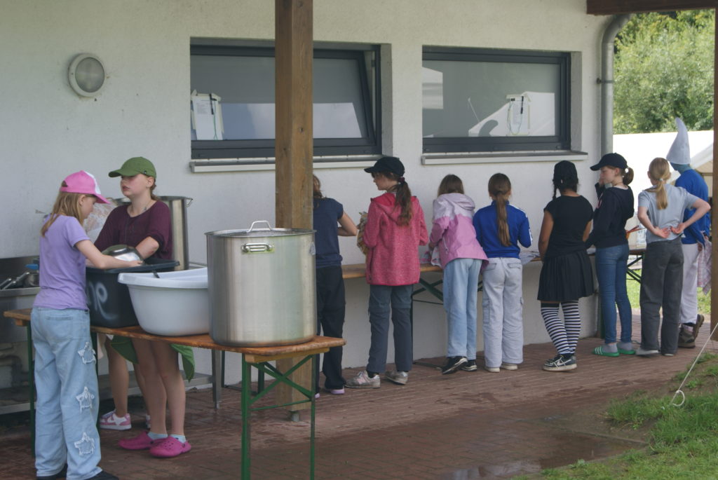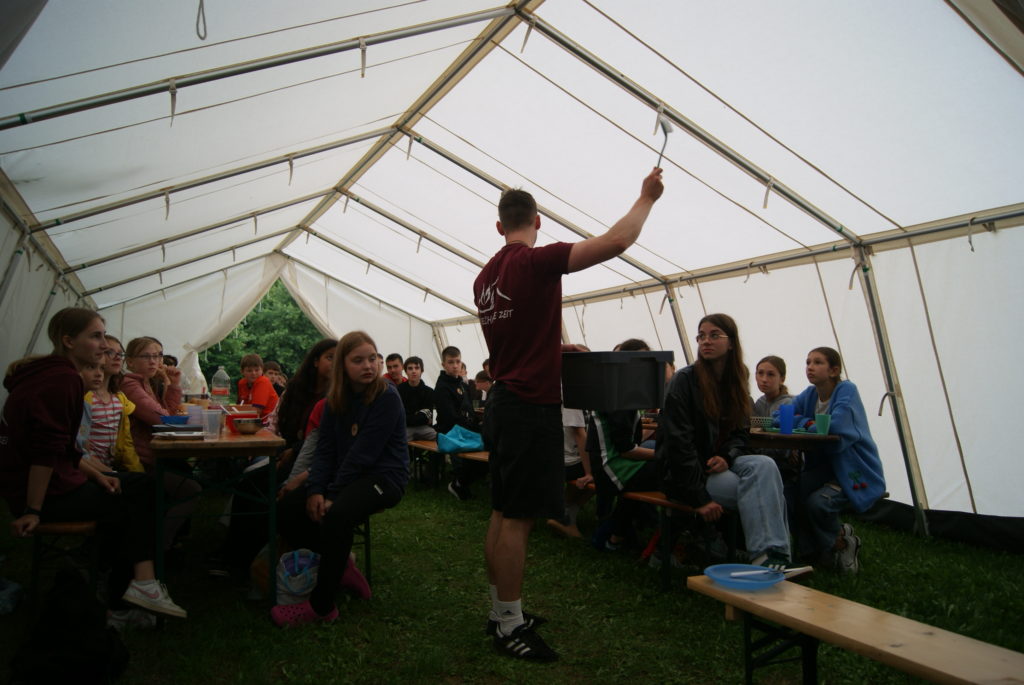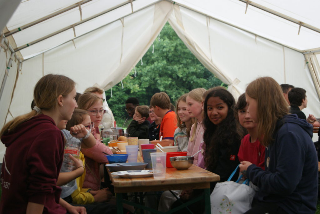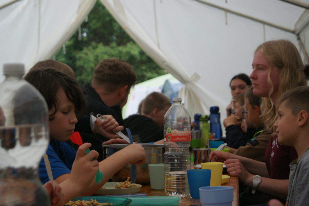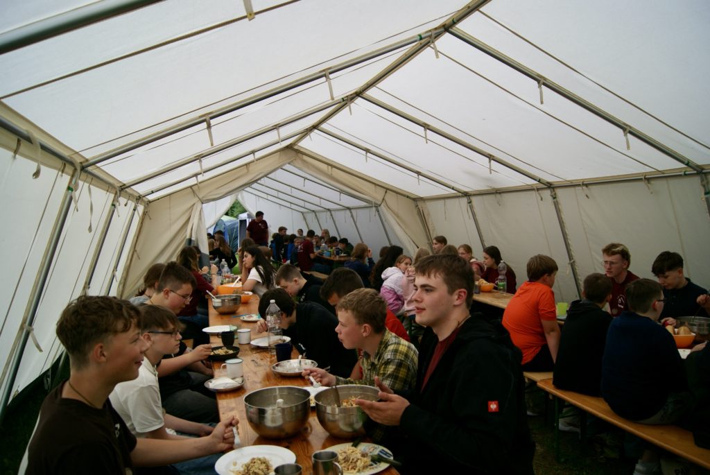 Nachdem wir endlich um 18 Uhr angekommen sind, haben wir erfahren mit wem wir in einem Zelt sind und unsere Zelte eingeräumt. In der Zeit hat die Küche uns ein leckeres Essen gekocht.