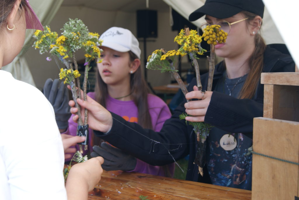Dann haben wir gegessen. Das was sehr lecker. Und dann waren wir unterwegs und haben Holz und andere Sachen haben wir Mülltonnen und Kunstwerke gebaut.