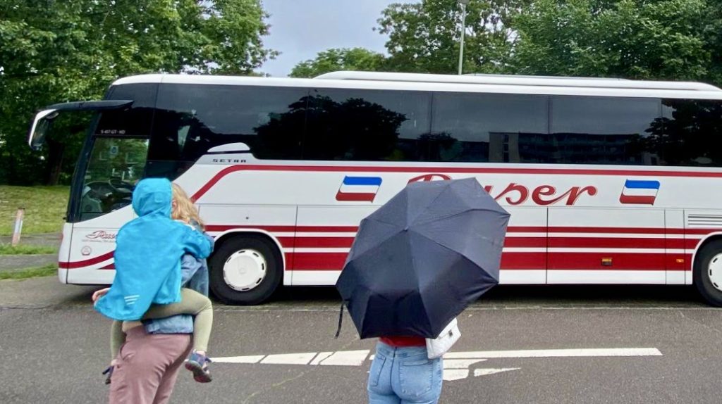 Als wir abgefahren sind, haben uns die Eltern gewunken. Die Busfahrt war lang und anstrengend, weil viel Stau war und weil wir nach zwei Stunden eine Pause gemacht haben.